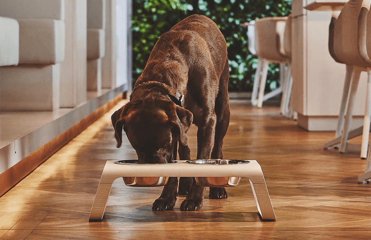 Подставки выпускаются в двух размерах, их высота рассчитана таким образом, чтобы питомцам разных пород не нужно было низко наклоняться и напрягать шею во время еды. В серии Desco продумана каждая деталь: силиконовые кольца надёжно фиксируют миски, поэтому они не гремят, когда собака ест. А благодаря накладкам на ножках подставка не скользит по полу.
