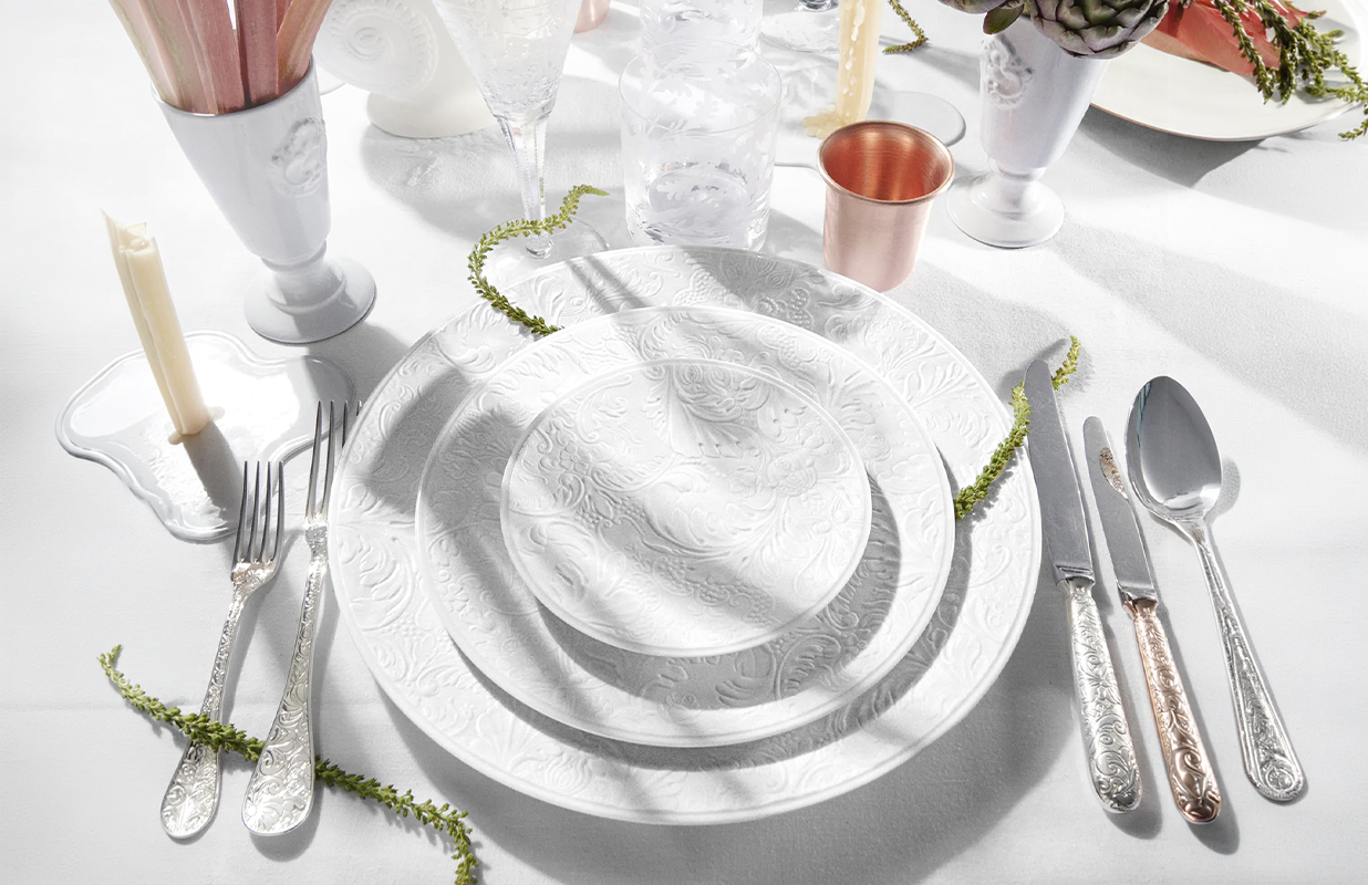 Французские мастера вручную доводят сложные линии на посуде до совершенства — словно создают не обеденные тарелки и пиалы, а флорентийские фрески. Дизайн получается чувственным и поэтичным — для изысканной сервировки.